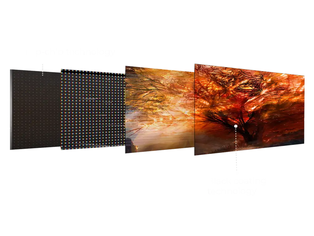 Full-Flip-Chip-on-Board (COB) LED Display Technology,Available in Pixel Pitch: 0.62mm/0.78mm/0.93/1.25mm/ 1.56mm/ 1.875mm, Brightness:1,000nits(3,500nits options),16:9 cabinet in 600x337.5x17.5,cabinet is 4.5KG only